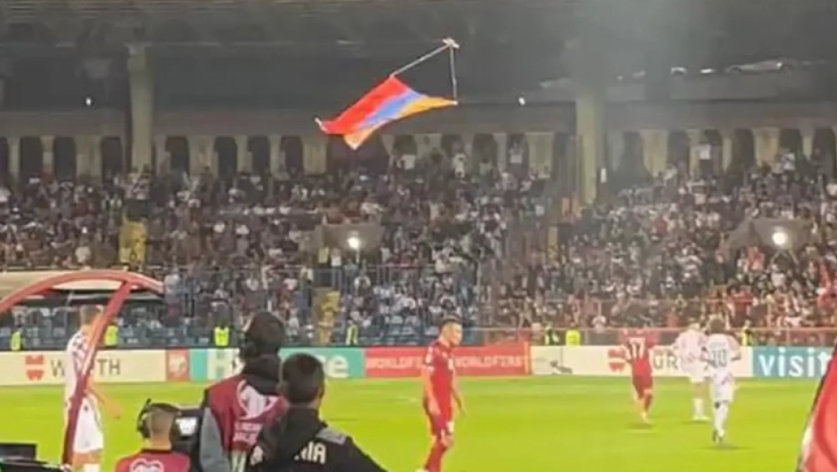 Naime, dron je u 35. minutu nosio zastavu Nagorno-Karabaha, nepriznate separatističke države na teritoriji Azerbejdžana sa većinskim jermenskim stanovništvom, oko koje već decenijama traju sukobi. Publika na stadionu je nastupu ovacijama.