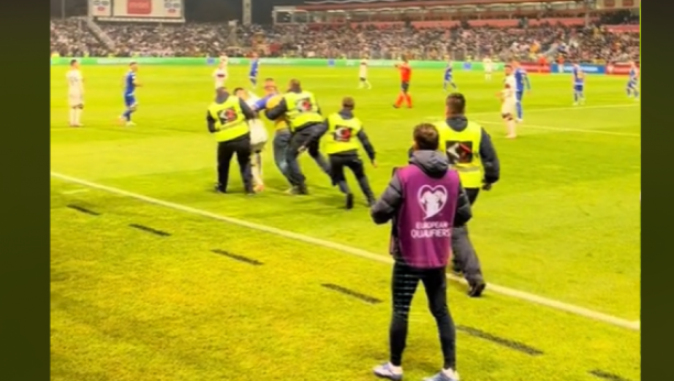Naime, on je usred meča "uleteo" na teren dok se Kristijano Ronaldo spremao da izvede aut i nasrnuo na slavnog Portugalca.