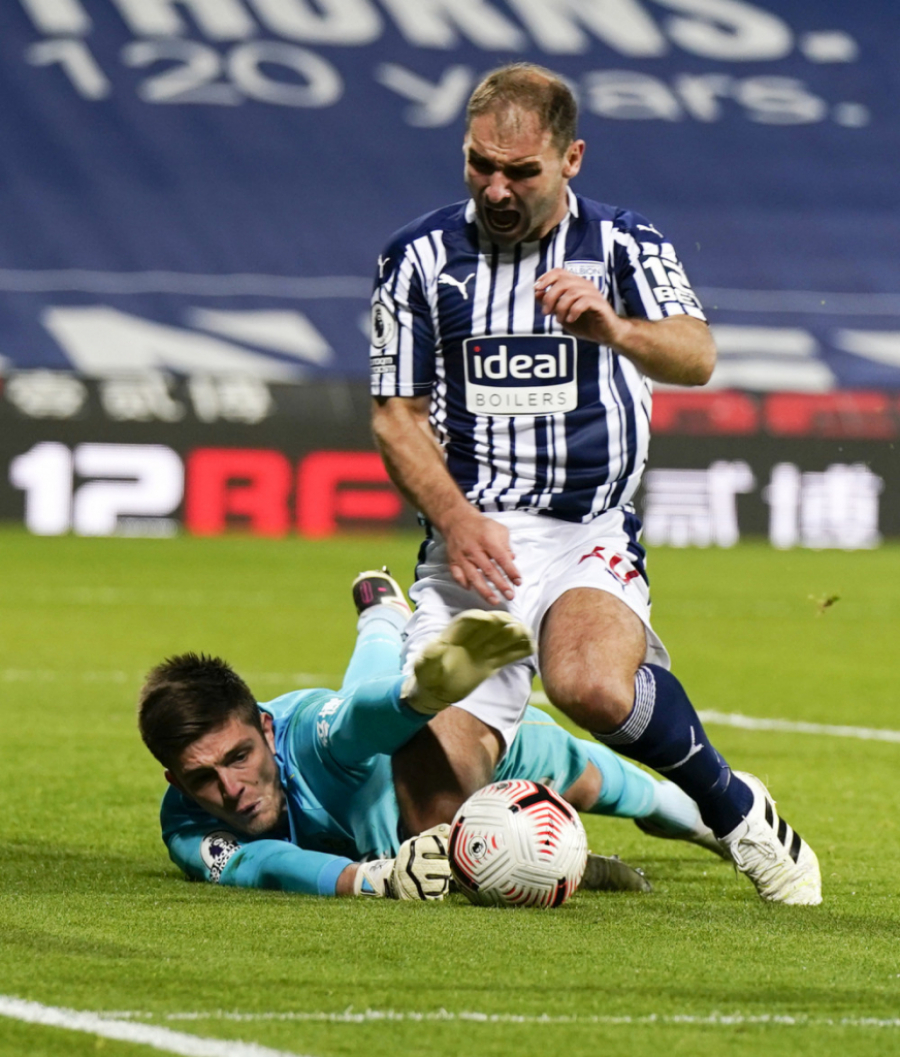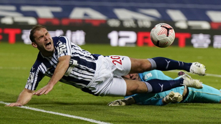 Prvo je sa sedam metara umesto gola pogodio protivničkog odbrambenog igrača, a onda mu se posle odbitka ukazala nova šansa, ali mu se golman Poup na dva metra bacio u noge i sprečio vođstvo domaćina.
