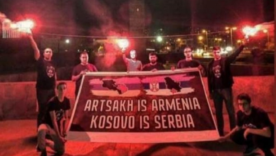 "Kosovo je Srbija, Arcah je Jermenija" - piše na transparentu koji drže navijači. Čak je i sam klub Ararat na instagram profilu postavio ovu sliku.