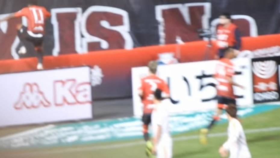Napadač japanskog Sapora povredio se kada je preskočio ogradu tokom trčanja ka navijačima.