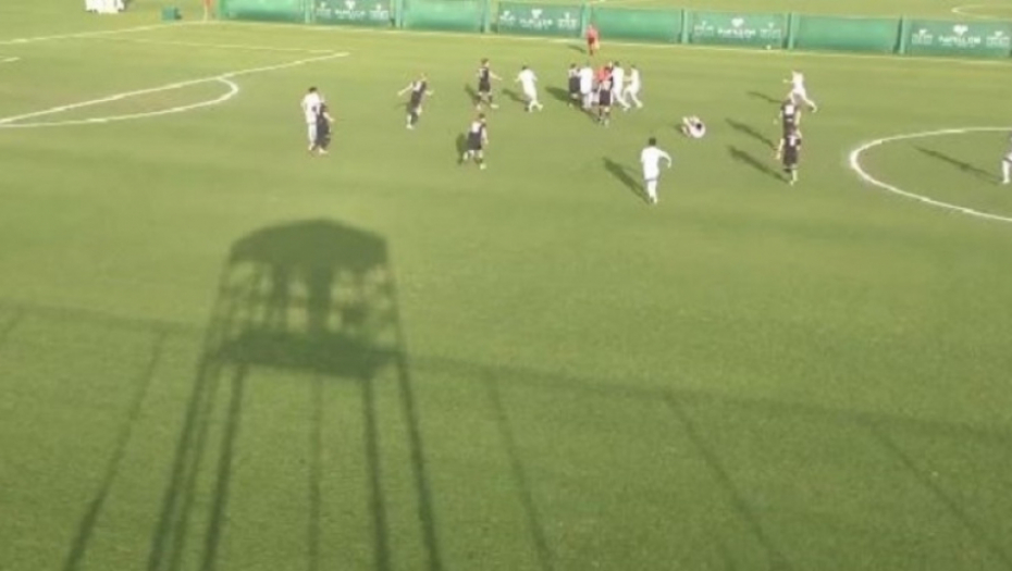 U 29. minutu oštar start nad igračima Okžetpesa, fudbaler Veresa je odneo dvojicu odjednom, tako je sve počelo...