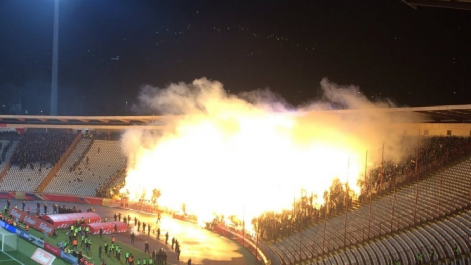 Umesto da se vidi vatra na terenu daleko je zanimljivije na tribinama ove večeri na "Marakani". Najpre su navijači Partizana prekinuli meč na nekoliko minuta zbog velike bakljade.