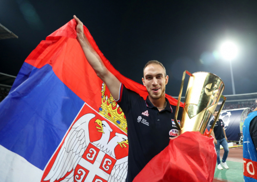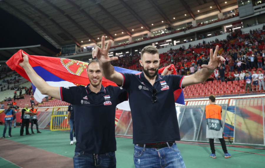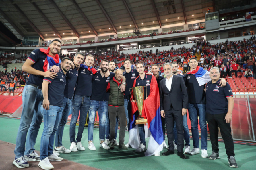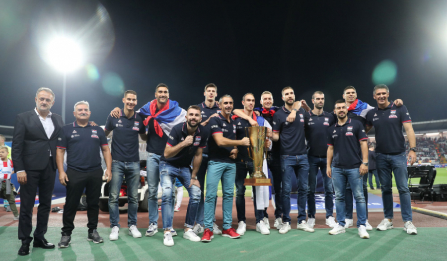 20:30 Evropski prvaci, odbojkaši Srbije defiluju trkačkom stazom i pozdravljaju publiku pred meč Crvena zvezda - Olimpijakos.