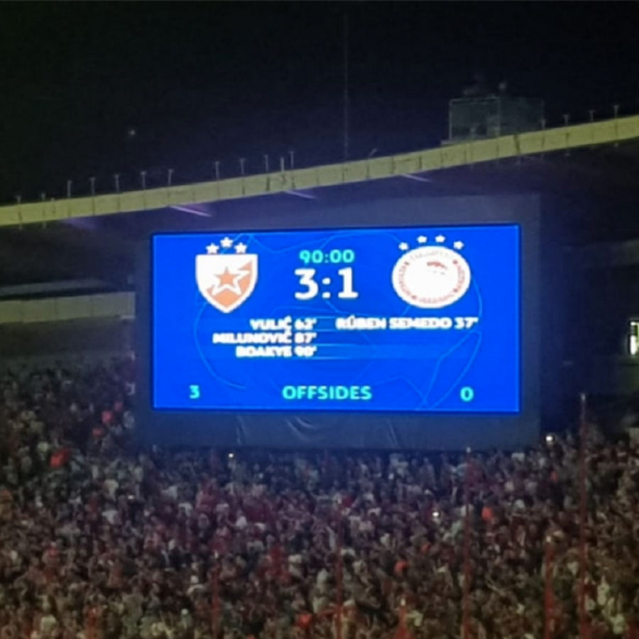 Kraj meča! Crvena zvezda je savladala Olimpijakos rezultatom 3:1 u drugom kolu grupne faze Lige šampiona. Grci su vodili na poluvremenu, a onda se dogodio crveni karton za goste i kompletan preokret. Pogocima Vulića, Milunovića i Boaćija domaći tim je slavio.