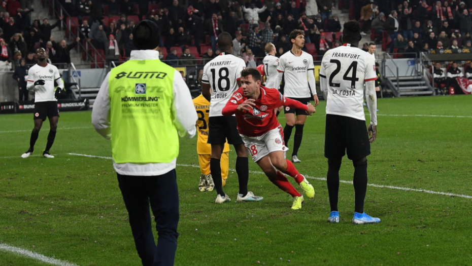 Fudbaleri Majnca pobedili su u poslednjoj utakmici 13. kola Bundeslige ekipu Ajntrahta iz Frankfurta 2:1. Poveo je gost sa 1:0 u 34. minutu golom Hinteregera i tim rezultatom otišlo se na odmor.