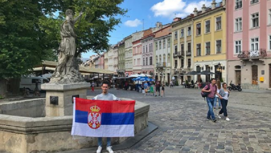 Englez sa srpskom trobojkom otišao u Ukrajinu da gleda bruku "Orlova"! (FOTO)