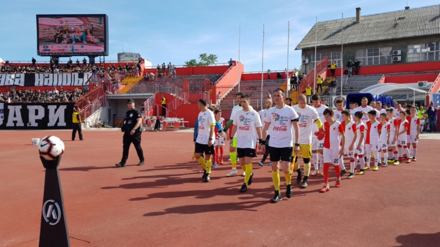 Fudbaleri Vojvodine i Partizana, uoči današnjeg derbija Superlige, izašli su na teren u majicama Sportskih igara mladih (SIM) i na taj način najavili svečano regionalno otvaranje SIM 15. maja na Trgu Slobode u Novom Sadu.