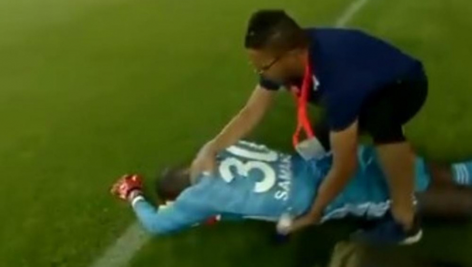 Iskusni golman je dobio žestok udarac, ali je posle ukazane pomoći ustao. Međutim, dok je napuštao teren, Samasa se srušio i nije mrdao!