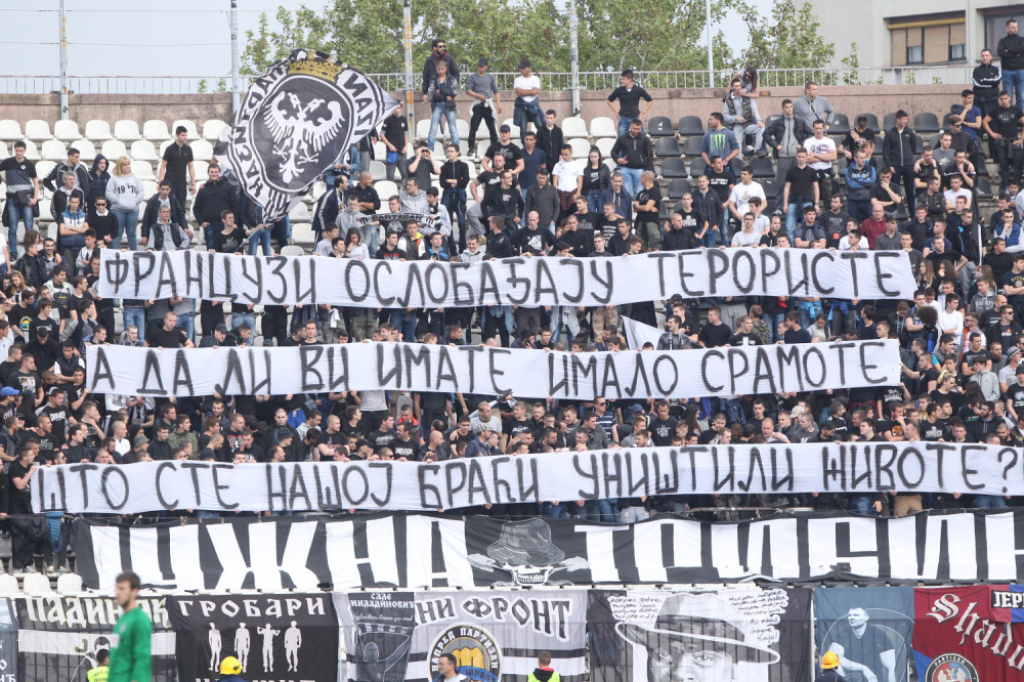 Svoje mišljenje o tome iskazali su i navijači Partizana na meču plej-ofa Superlige sa Napretkom kada su na južnoj tribini razvukli transparent: "Francuzi oslobađaju teroriste, a da li vi imate imalo sramote što ste našoj braći uništili živote!".