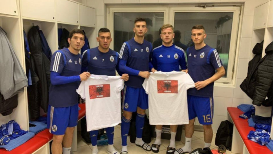Inače, za ovaj kluba igraju petorica fudbalera iz Albanije, oni su poslali podršku svojoj zemlji sa majicama na kojima je zastava te zemlje!