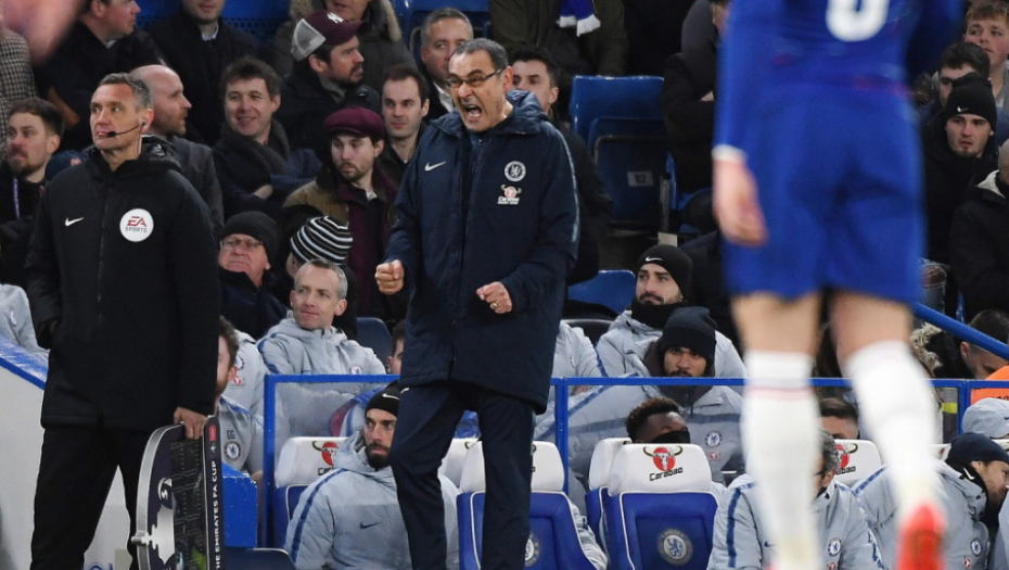 Stamford bridžom su odjekivali zvižduci zbog ovog poteza, a pojedini navijači koji su sedeli iza Sarija, glasno su ga psovali.