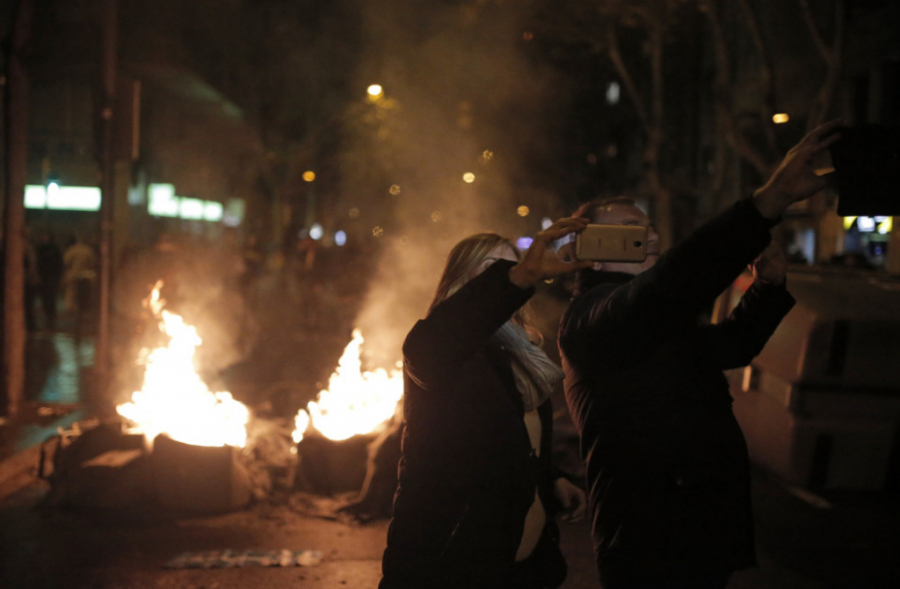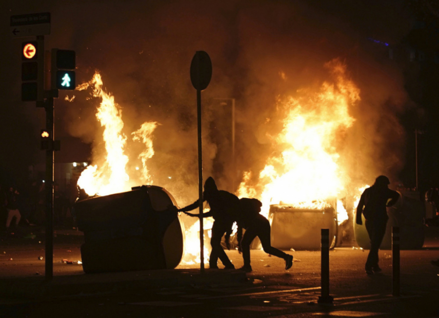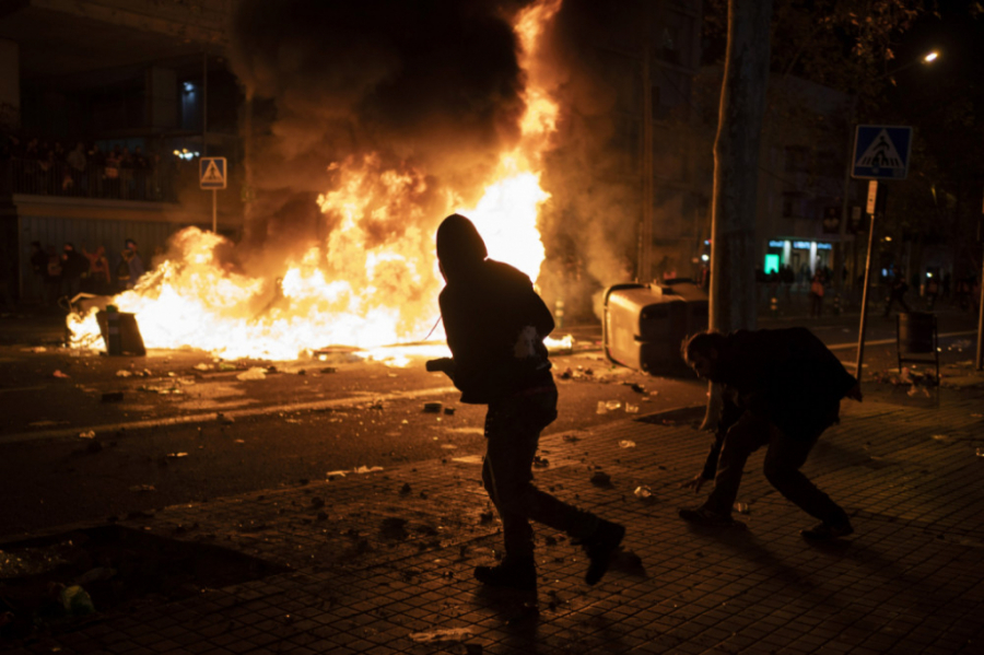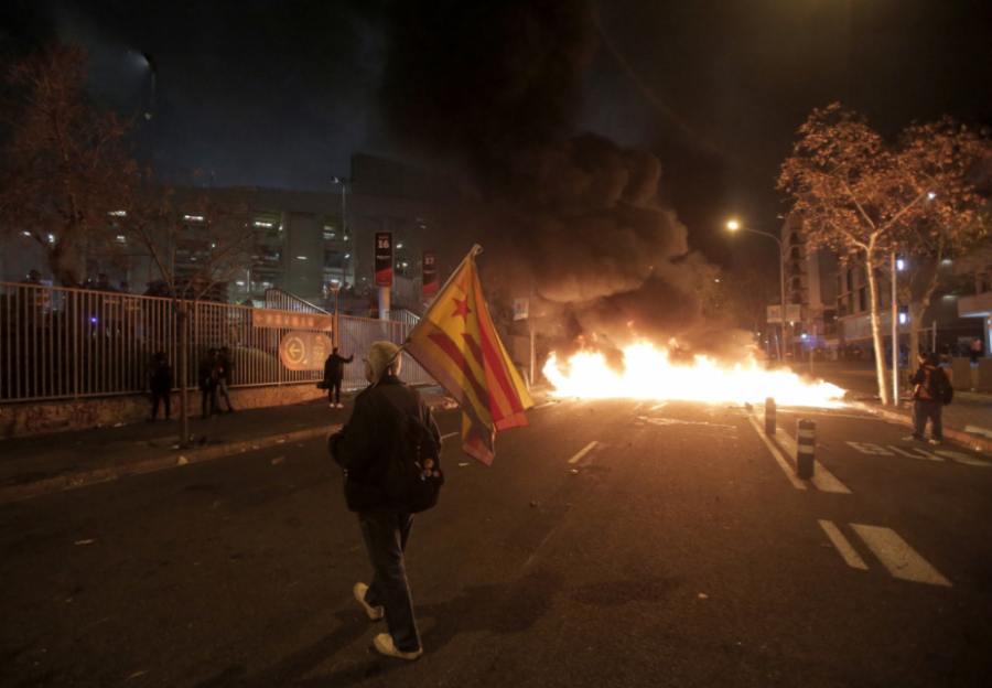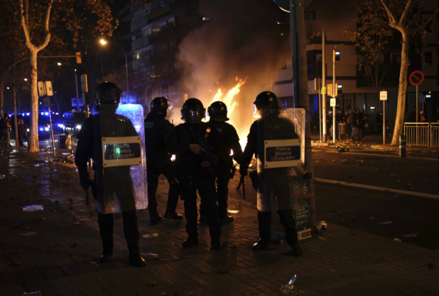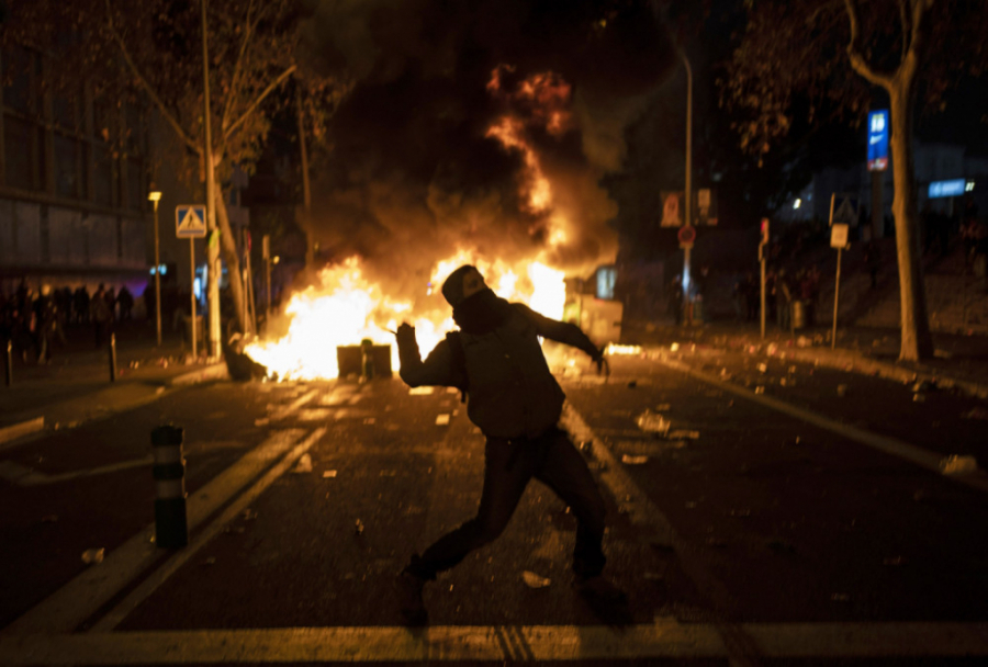 Kako se noć odmicala bilo je sve više incidenata, demonstranti su nosili zastavu Katalonije i transparente "Španijo, sedi i razgovaraj!".