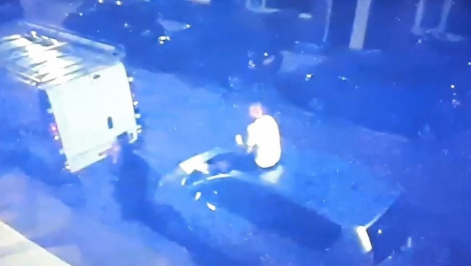 Nadzorne kamere snimile su Snajdera kako najpre skače po automobilu svog suseda, a onda i seda na njega.