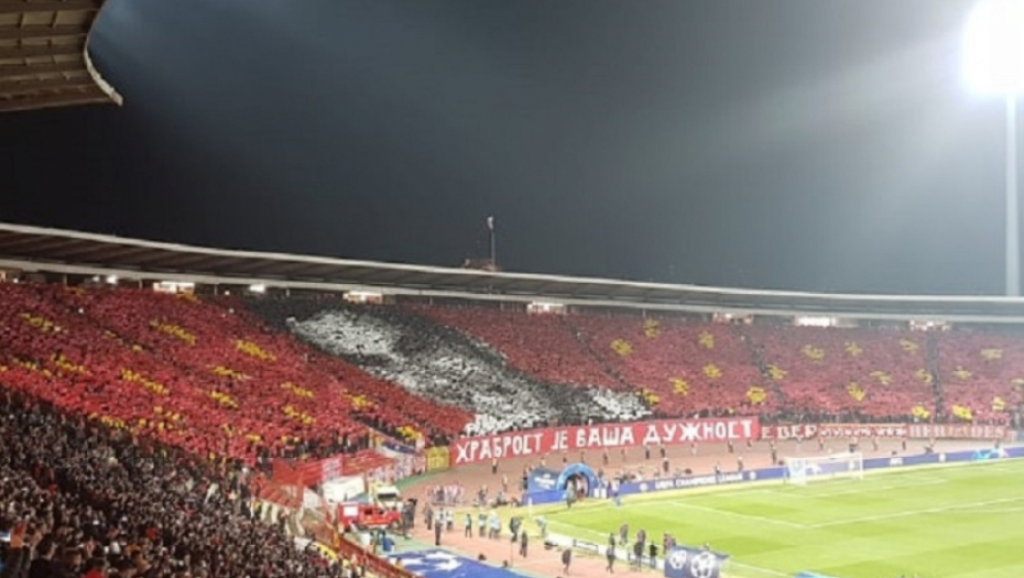 Navijači Crvene zvezde su na severnoj tribini formirali koreografiju sa likom poginulog navijača Marka Ivkovića.