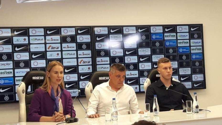 Pored Miloševića, na konferenciji je bio i štoper Strahinja Pavlović.