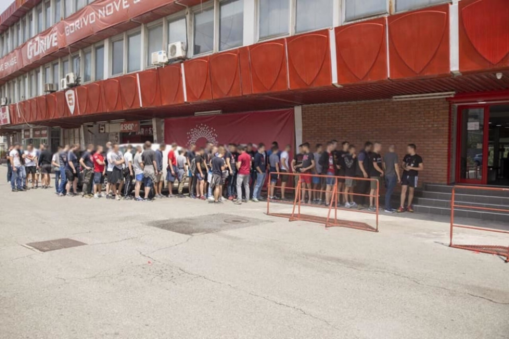A zatim stali u red ispred novih prostorija koje se nalaze na zapadnoj tribini Zvezdinog stadiona kako bi se učlanili i finansijski pomogli klubu.