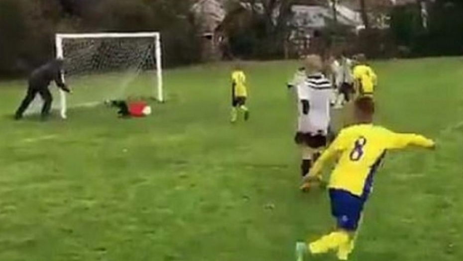 Jedan otac koji je stajao kraj gola sina i neprestano mu suflirao šta da radi u potpunosti se iznervirao kada je video praznu mrežu.