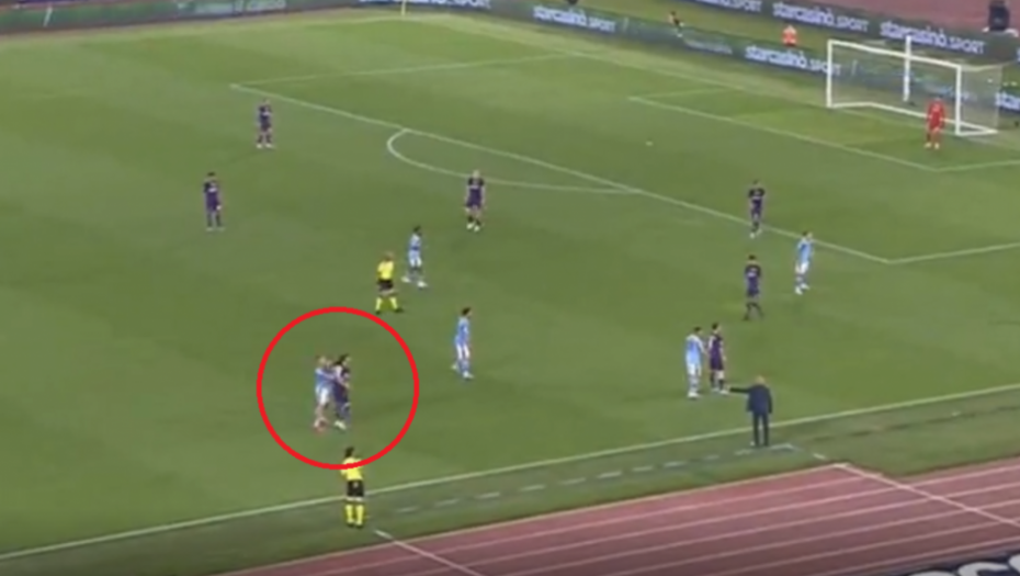 Mladi srpski napadač je u nadoknadi dobio direktan crveni karton jer je laktom namerno u glavu udario igrača Lacija.