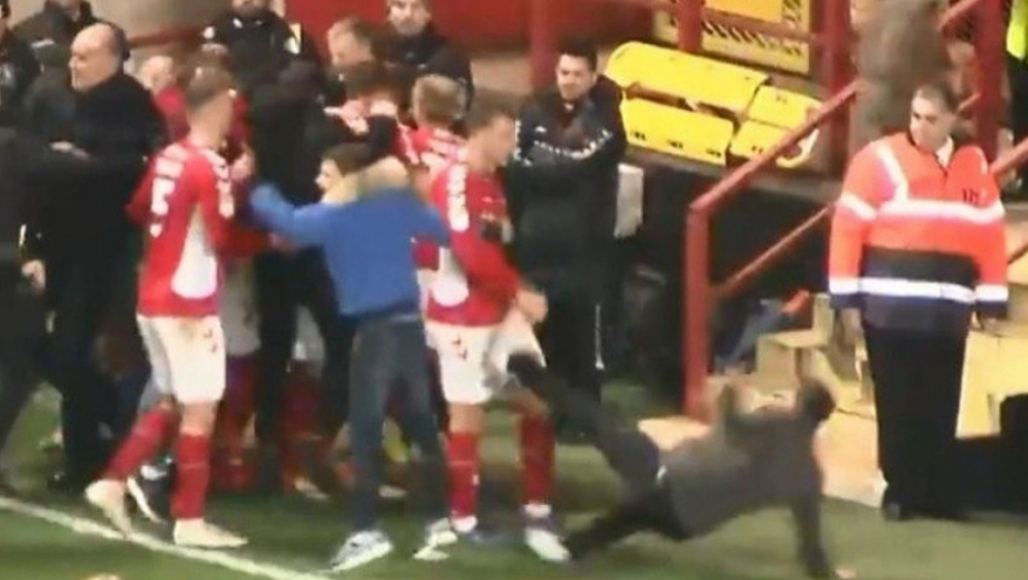 Navijač uklizao svom igraču i udario ga u MEĐUNOŽJE! (VIDEO)