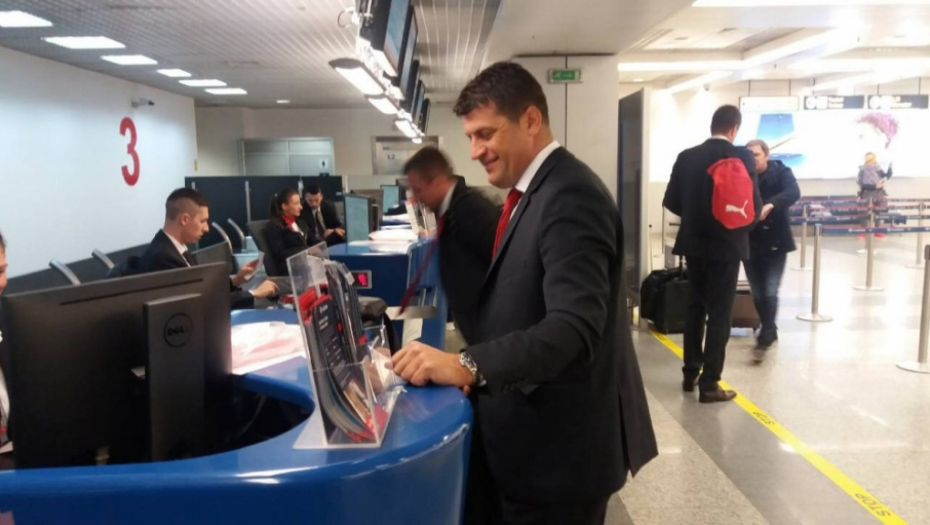 Cela crveno-bela ekspedicija bila je dobro raspoložena na beogradskom aerodromu, a naročito trener.