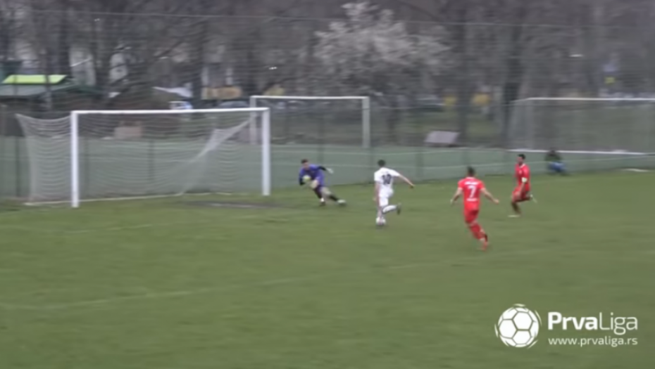 Fudbaleri Kabela pobedili su IMT na Novom Beogradu u meču 22. kola Prve lige Srbije sa 2:0. Iako su gosti došli do vrlo bitnog trijumfa u borbi za plasman u Superligu, njihov igrač obeležio je duel, ali ne pogotkom već nestvarnim promašajem.