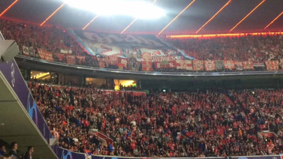 Duel Nemačkog i Srpskog šampiona igra se pred punim tribinama Alijanc arene, a iako je navijača Crvene zvezde višestruko manje nekoliko hiljada Delija pruža neverovatnu podršku svom timu pa minhenskim stadionom odzvanja pesma zvezdaša koji su nadjačali domaću publiku.