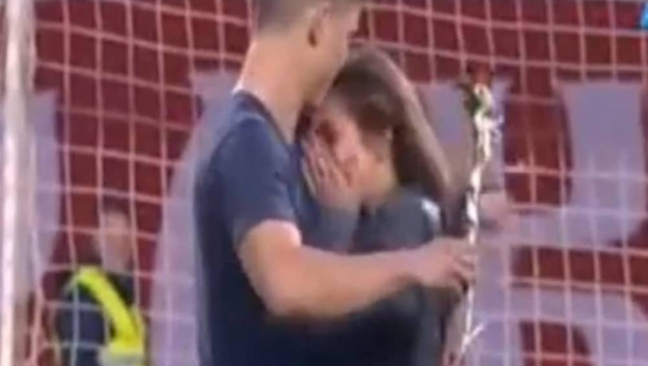 Jedan od navijača domaćeg tima, uz pomoć zvaničnog spikera, zaprosio je devojku.