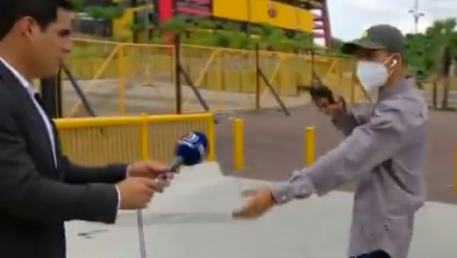 Novinara tokom prenosa utakmice prekinuo čovek sa pištoljem! (VIDEO)