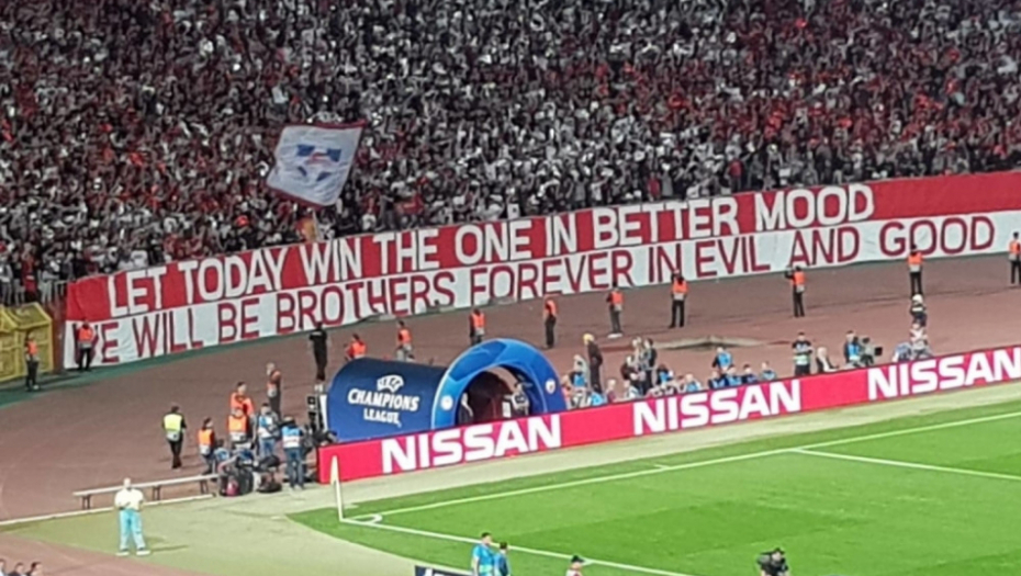 Najvernije pristalice Crvene zvezde, popularne "Delije" su svim navijačima na tribinama podelili papir sa porukom! "Delije" su apelovale sve navijače da podrže oba tima, jer u ovoj utakmici treba sačuvati bratstvo i obraz, da od ove utakmice ne prave cirkus već spektakl, da ispoštuju himnu Olimpijakosa i njihove igrače da dočekaju aplauzom i da ih isto tako isprate! Celu molbu možete pročitati na fotografiji ispod!