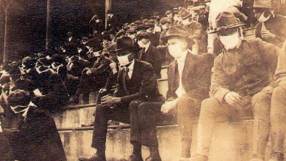 On je opisao fotografiju jednog stadiona sa fudbalske utakmice koja održana u vreme španske groznice, dok su svi na tribinama imali maske.