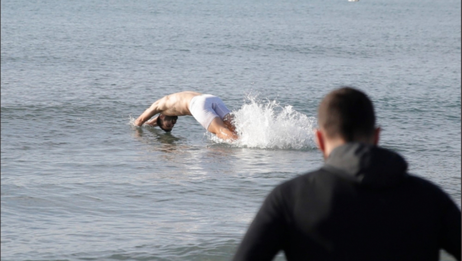 Prvi je krenuo Vujačić koji skočio na glavu u ledenu vodu!