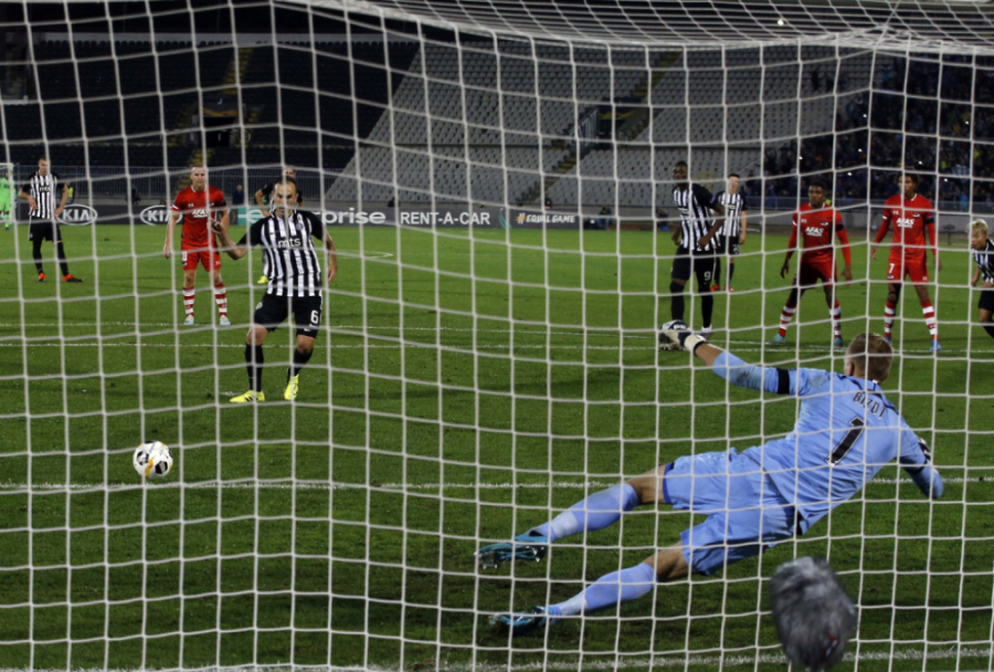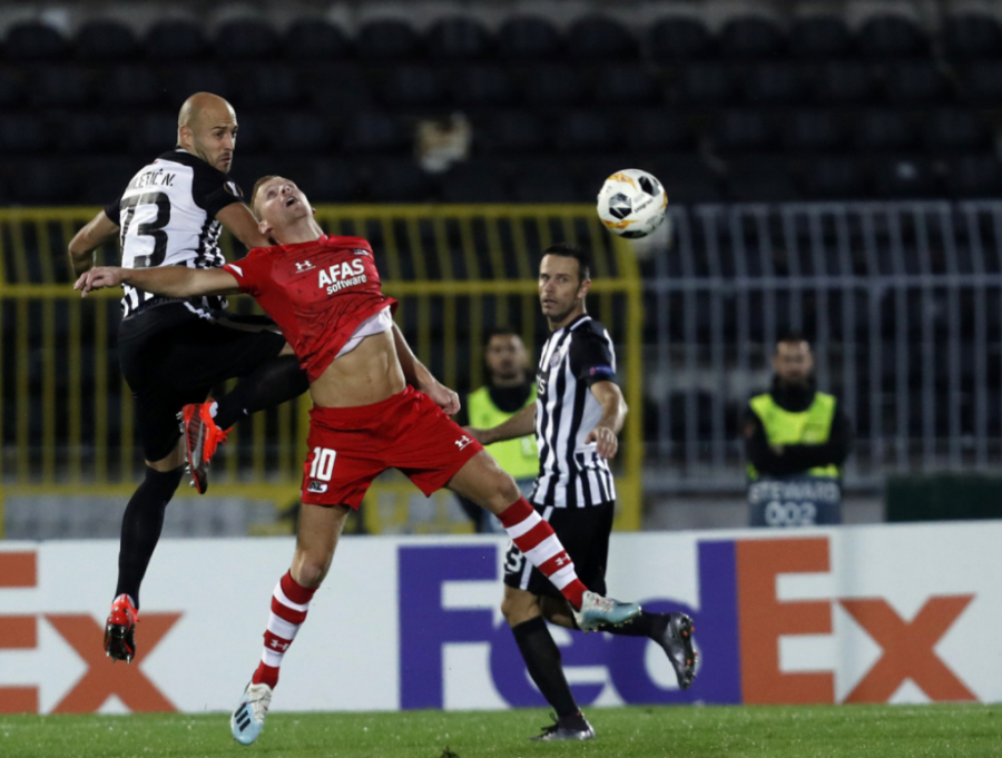 Kraj prvog poluvremena. Partizan i AZ Alkmar imaju po jedan gol na kontu nakon prvih 45 minuta.