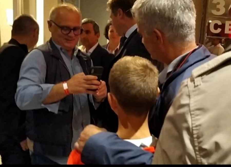 Bogat ketering za stolom ga nije interesovao, tih 15 minuta je posvetio dragim domaćinima. Ćaskao je i sa Savom Miloševićem, Markom Pantelićem, Goranom Vesićem... Videlo se da uživa u društvu srpskih fudbalskih radnika, istinskih prijatelja.