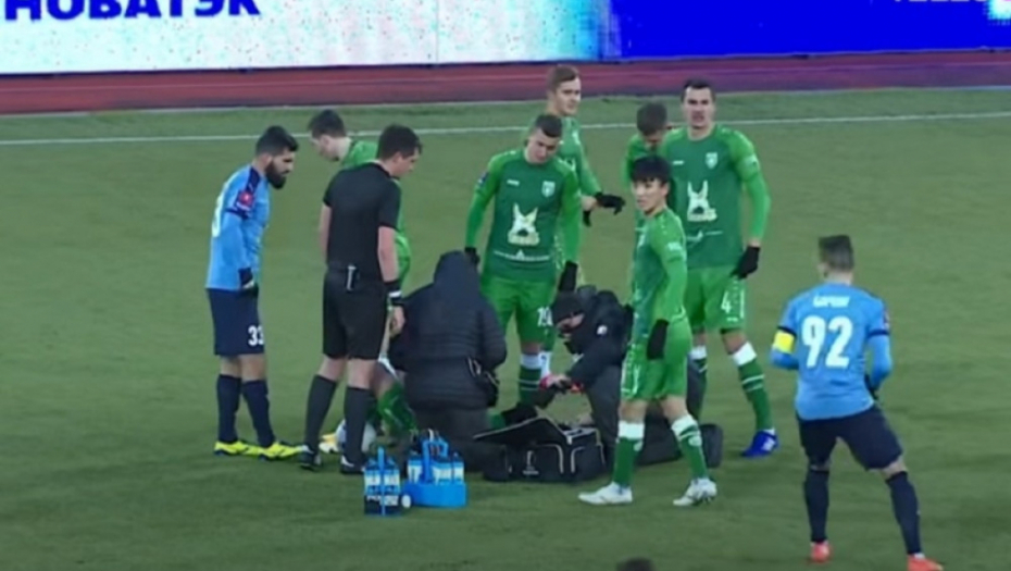 Jevtića je laktom u glavu udario odbrambeni igrač SKA Habarovska Vladislav Bragin. Sav krvav je završio na travi. Lekari su mu ukazivali pomoć, a kada je stao na noge, onesvestio se.