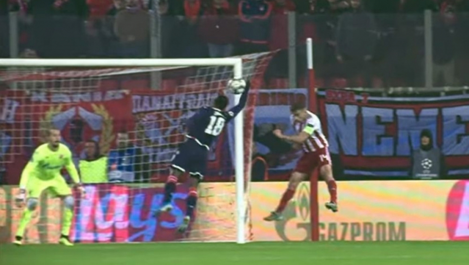 Brazilski levi bek je u završnici meča u Pireju nespretno reagovao, igravši rukom u svom šesnaestercu, a najstrožu kaznu realizovao je El Arabi.
