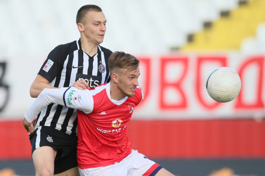 20. minut - Štoperi Partizana glume centarfore na ovom meču. Sada je Maki Banjak bio blizu pogotka. Pretio je glavom posle kornera, ali lopta ide pored gola.