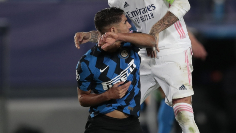Real je u trećem kolu Lige šampiona uz neregularan gol Karima Benzeme savladao Inter posle velike borbe sa 3:2, a meč je obeležio verbalni obračun Ramosa i bivšeg igrača Reala Hakimija. Posle jednog pada u šesnaestercu Rala, Ramos se žestoko istresao na Marokanca.