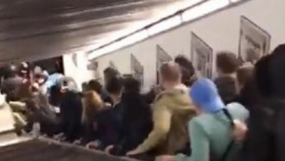 Ruski navijači našli su se na metro stanici Republika, kada je ogroman broj njih krenuo istovremeno na pokretne stepenice.