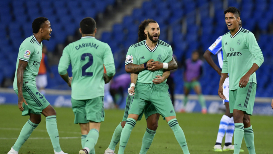 Fudbaleri Real Madrida su savladali Sosijedad na gostujućem terenu rezultatom 1:2 i time se izjednačili na prvom mestu tabele sa Barselonom.