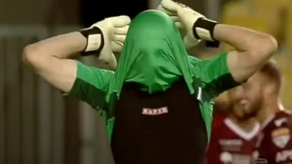 Tada je mladom golmanu Rapida pukao film, krenuo je da vrišti i mlatarao je rukama, a posle kritika upućenih sudiji dobio je crveni karton!