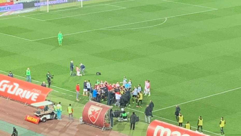 63' Boaći je posle kornera pao kao pokošen na travu! Milunović je pao preko njega, Zvezdin stranac izgubio je svest. Reagovali su brzo lekari.