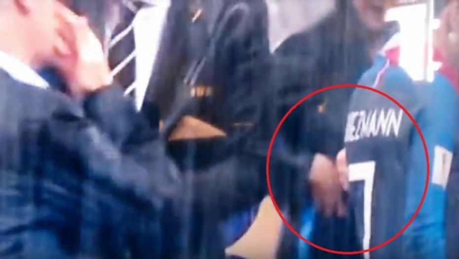 Na snimku se vidi da je Grizman svoju medalju dobio, a Putin, koji se nalazi pored žene, se već spremio da dodeli medalju selektoru Francuske Dešampu koji je bio u redu iza fudbalera.