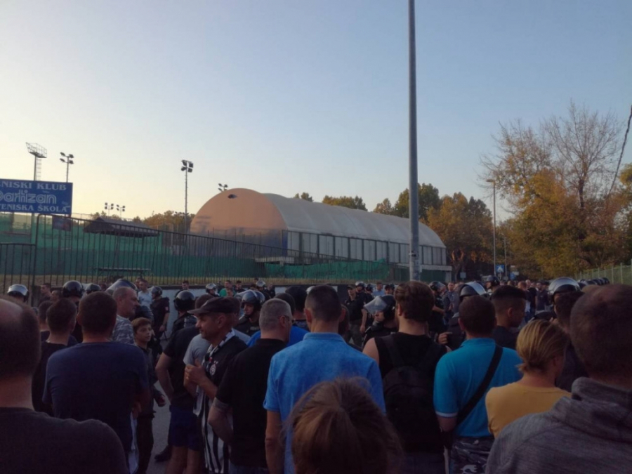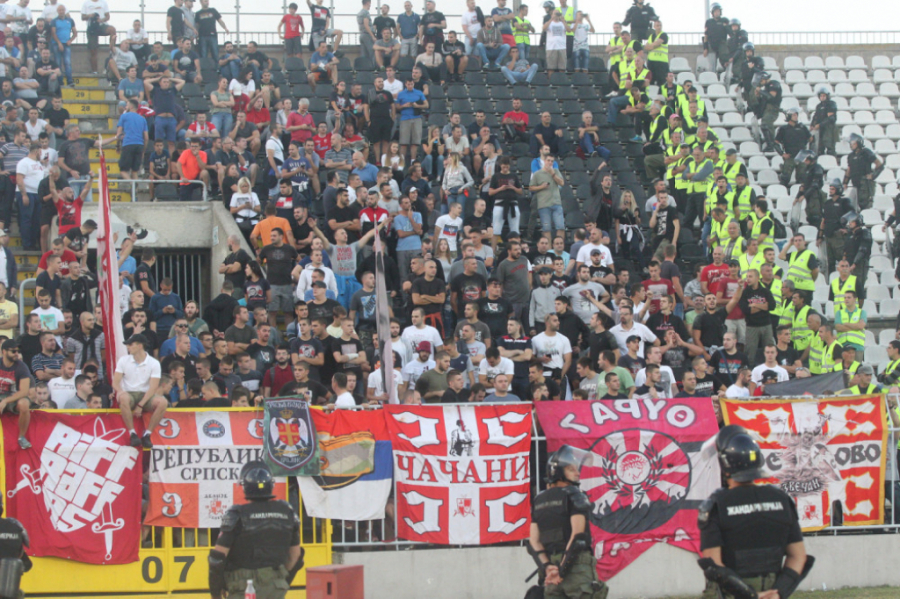 Za petnaestak minuta sudija Danilo Grujić daće znak da utakmica počne. Prema našim informacijama s lica mesta, ovog puta na sreću, nije bilo tuča oko stadiona.
