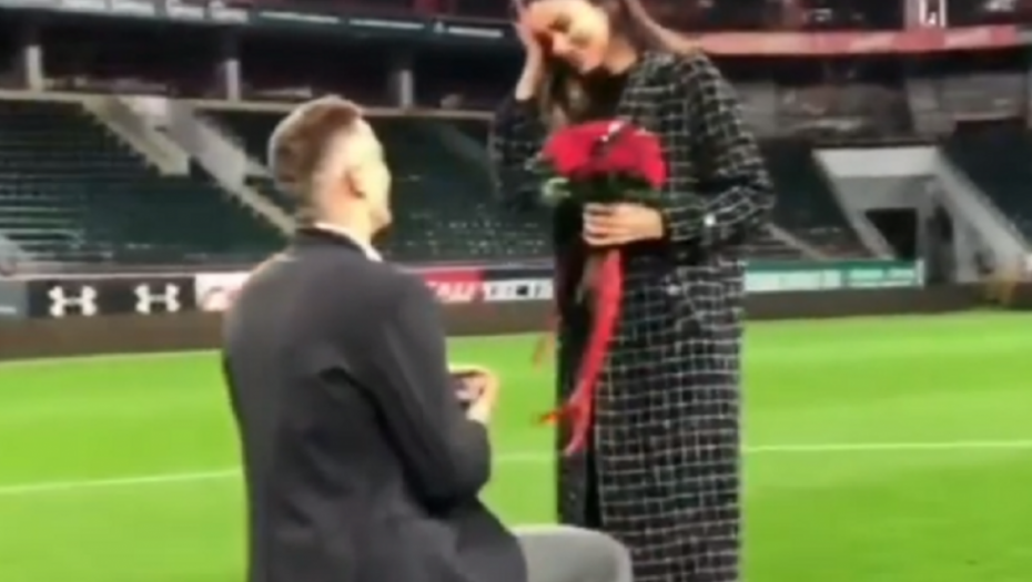 Crnogorski fudbaler Luka Đorđević je zaprosio svoju dugogodišnju devojku Jovanu Baošić na svom radnom mestu - na fudbalskom terenu!