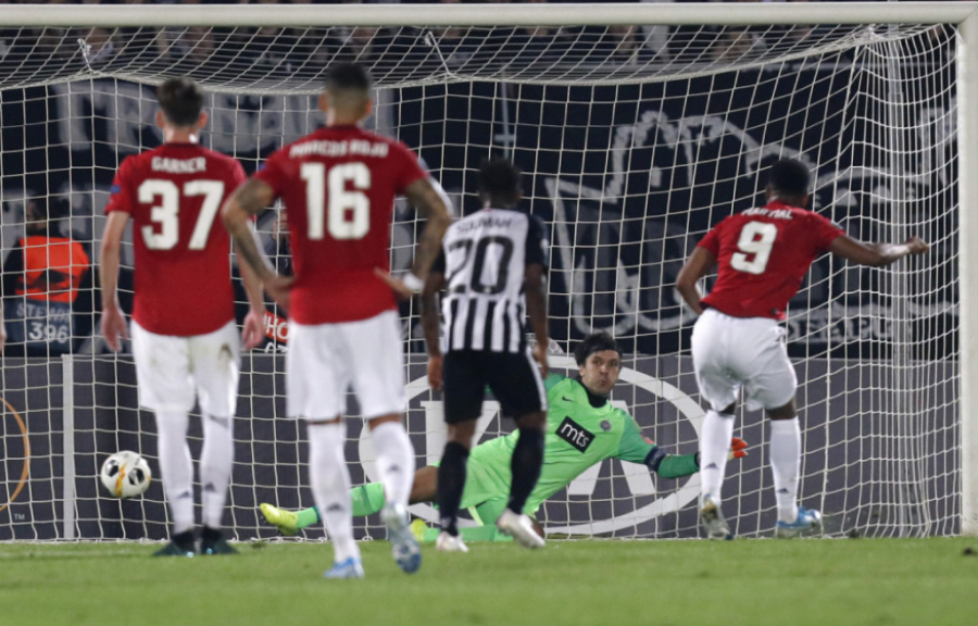 43' VODI MANČESTER 1:0! Marsijal je pogodio sa bele tačke, pre toga je jedanaesterac napravio Nemanja Miletić. Mogao je španski arbitar da ne svira ovde ništa, niko mu ne bi zamerio. Ipak, smatrao je kako je Miletić za delić sekunde zakasnio sa startom.