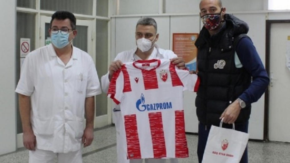Posetu Zemunskoj bolnici ulepšao je i kapiten Crvene zvezde, Milan Borjan koji je sa zadovoljstvom uručio medicinarima poklone koje je njegov klub pripremio za njih.