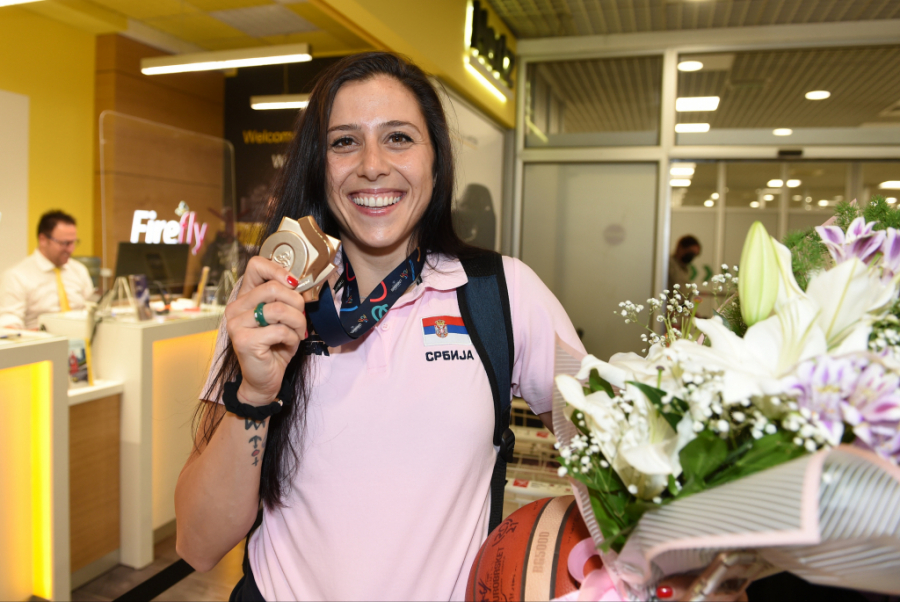 Da nije tu došla tek tako, samo da igra, već da i oseća u srcu zemlju za koju se bori, pokazivala je pre svakog meča kada je zdušno sa ostalima pevala himnu Srbije.