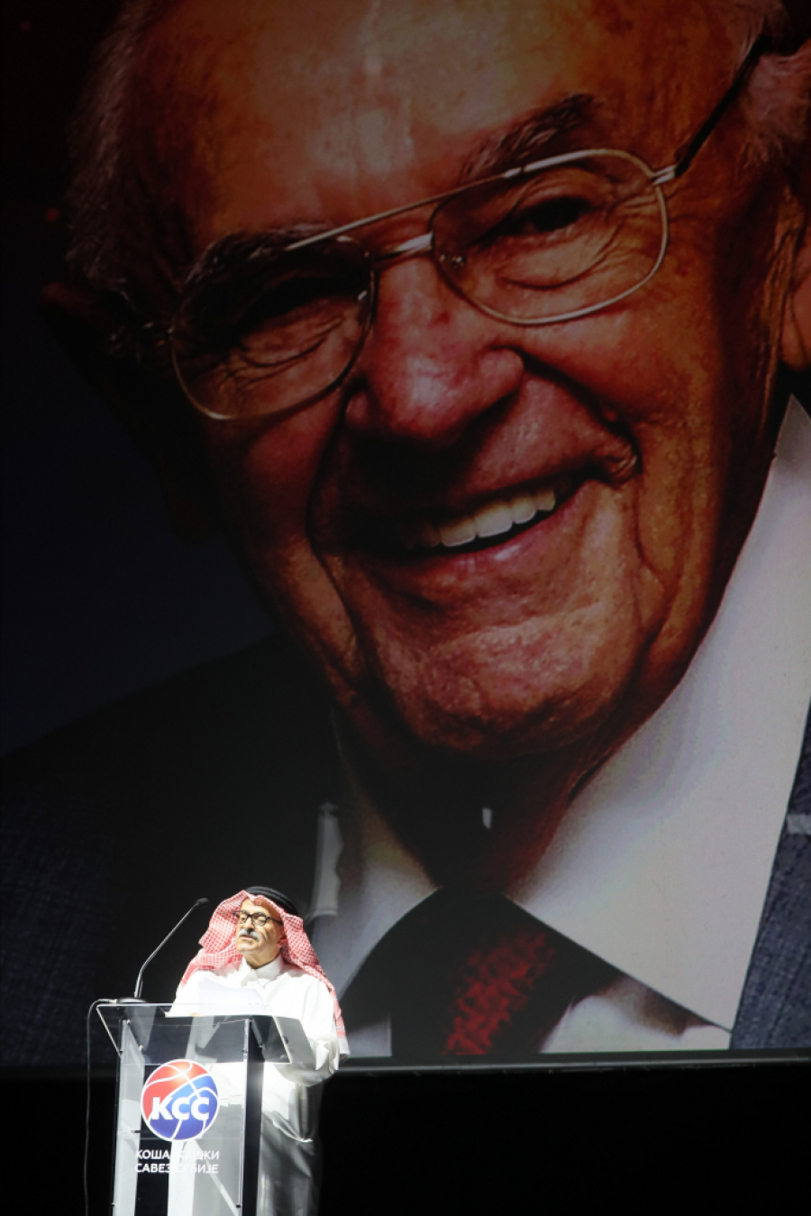 "Poštovani prijatelji košarke, okupili smo se ovde u čast života i rada Borislava Stankovića, čoveka koji je bio jedna od najvećih i najuticajnijih ličnosti u istoriji košarke. Nakon uspešne međunarodne košarkaške karijere kao igrač, igrao je za Jugoslaviju na prvom Svetskom privenstvu 1950. godine, nastavio je uspešnu karijeru trenera u svojoj zemlji i Italiji", rekao je Saud Ali Al-Tani.