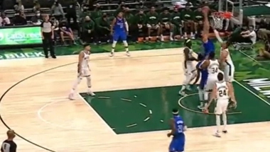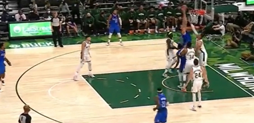 Iako su oko njega bili Janis Adetokunbo i Bruk Lopez, Boban je loptu snažno zakucao u koš čim je dobio pas.